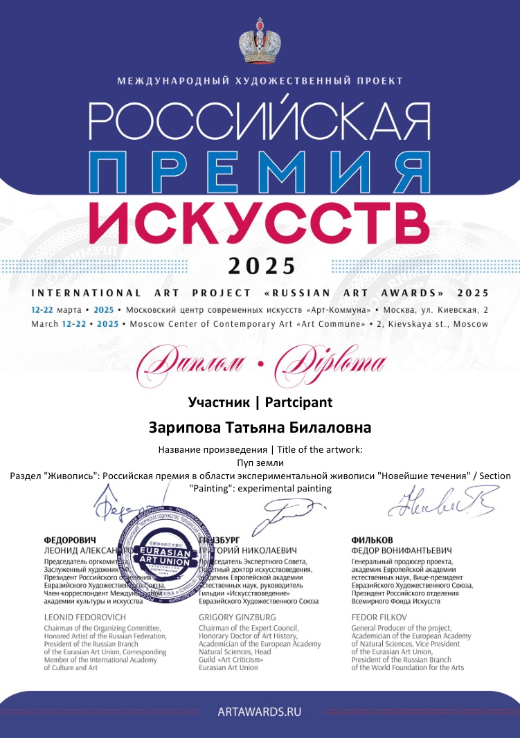 Картина приняла участие в выставке "Российская премия искусств". Произведение раскрывает тему “интерпретация событий из собственного опыта и мировоззрения”. Кто-то увидит на полотне человека, достигшего цели, — символ успеха и преодоления. Другой же, человека, погруженного в свои страдания и живущего с бурей в душе, отвернувшегося от безмятежного мира. Выбор между жизнью и страданием — это не просто философский вопрос, а каждодневная реальность, с которой сталкивается каждый из нас. Осознавая это, мы получаем возможность изменить своё восприятие и, следовательно, свою жизнь." Год - 2024 Размер, см - 100*100 Техника исполнения - Акрил Направление - сюрреализм и абстрактное искусство