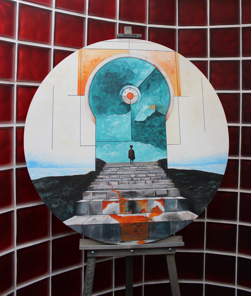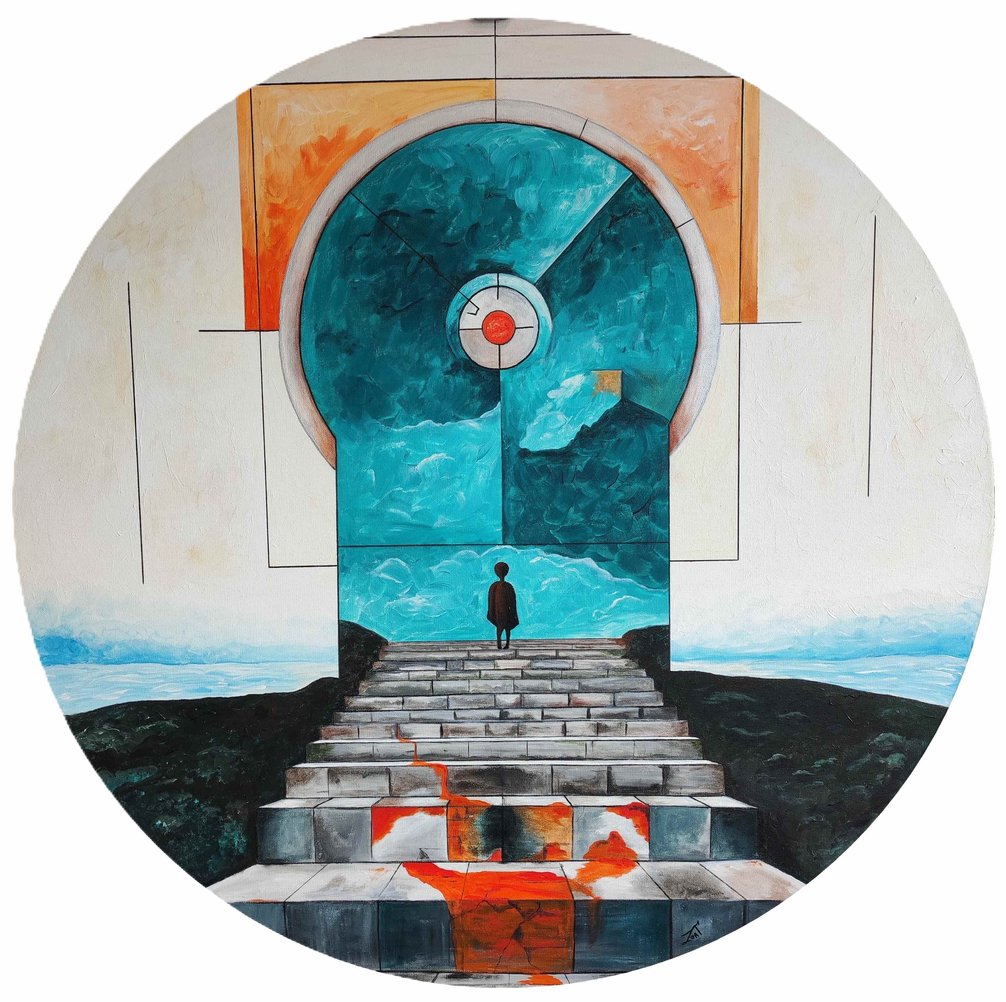 Картина приняла участие в выставке "Российская премия искусств". Произведение раскрывает тему “интерпретация событий из собственного опыта и мировоззрения”. Кто-то увидит на полотне человека, достигшего цели, — символ успеха и преодоления. Другой же, человека, погруженного в свои страдания и живущего с бурей в душе, отвернувшегося от безмятежного мира. Выбор между жизнью и страданием — это не просто философский вопрос, а каждодневная реальность, с которой сталкивается каждый из нас. Осознавая это, мы получаем возможность изменить своё восприятие и, следовательно, свою жизнь." Год - 2024 Размер, см - 100*100 Техника исполнения - Акрил Направление - сюрреализм и абстрактное искусство